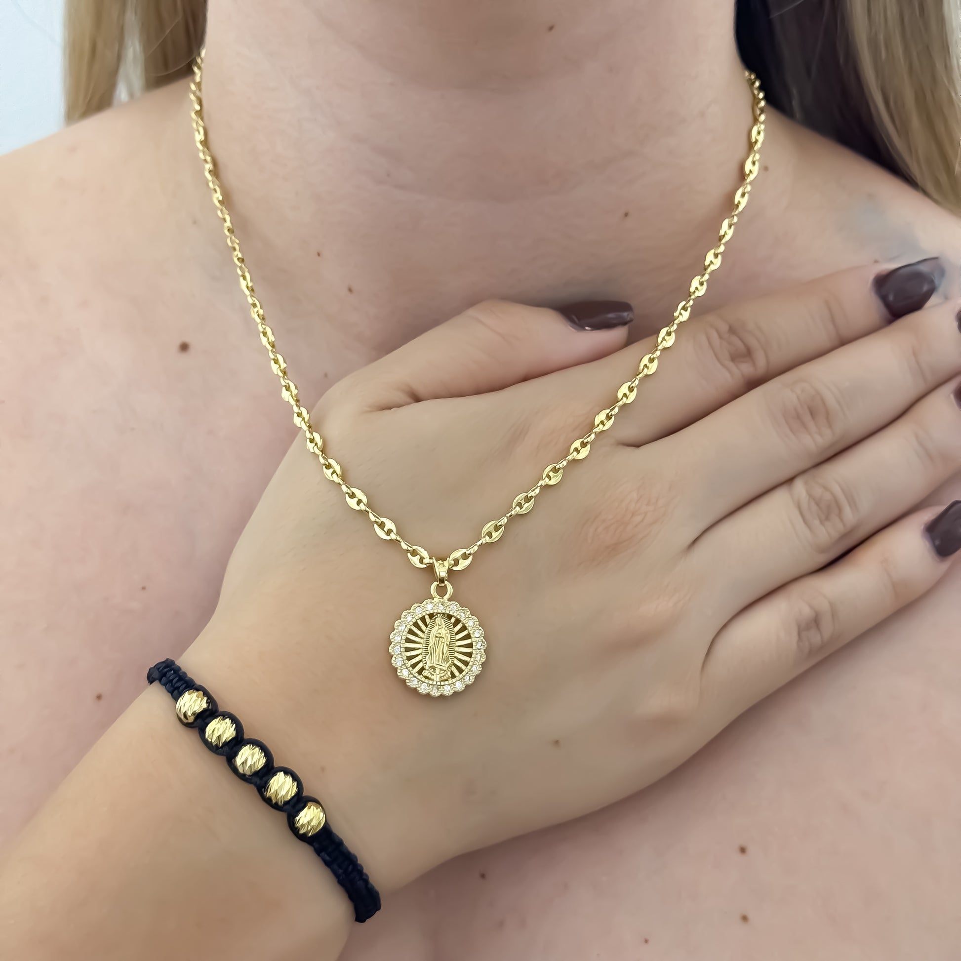 En momentos donde todo cambia, hay algo que permanece: la fe y el amor de la Virgen de Guadalupe, símbolo de protección, fuerza y esperanza. Esta cadena de 45 cm tejido Gucci viene acompañada de un hermoso dije con la Virgen de Guadalupe en micro circones, que ilumina y te conecta con lo más profundo de tu espiritualidad.