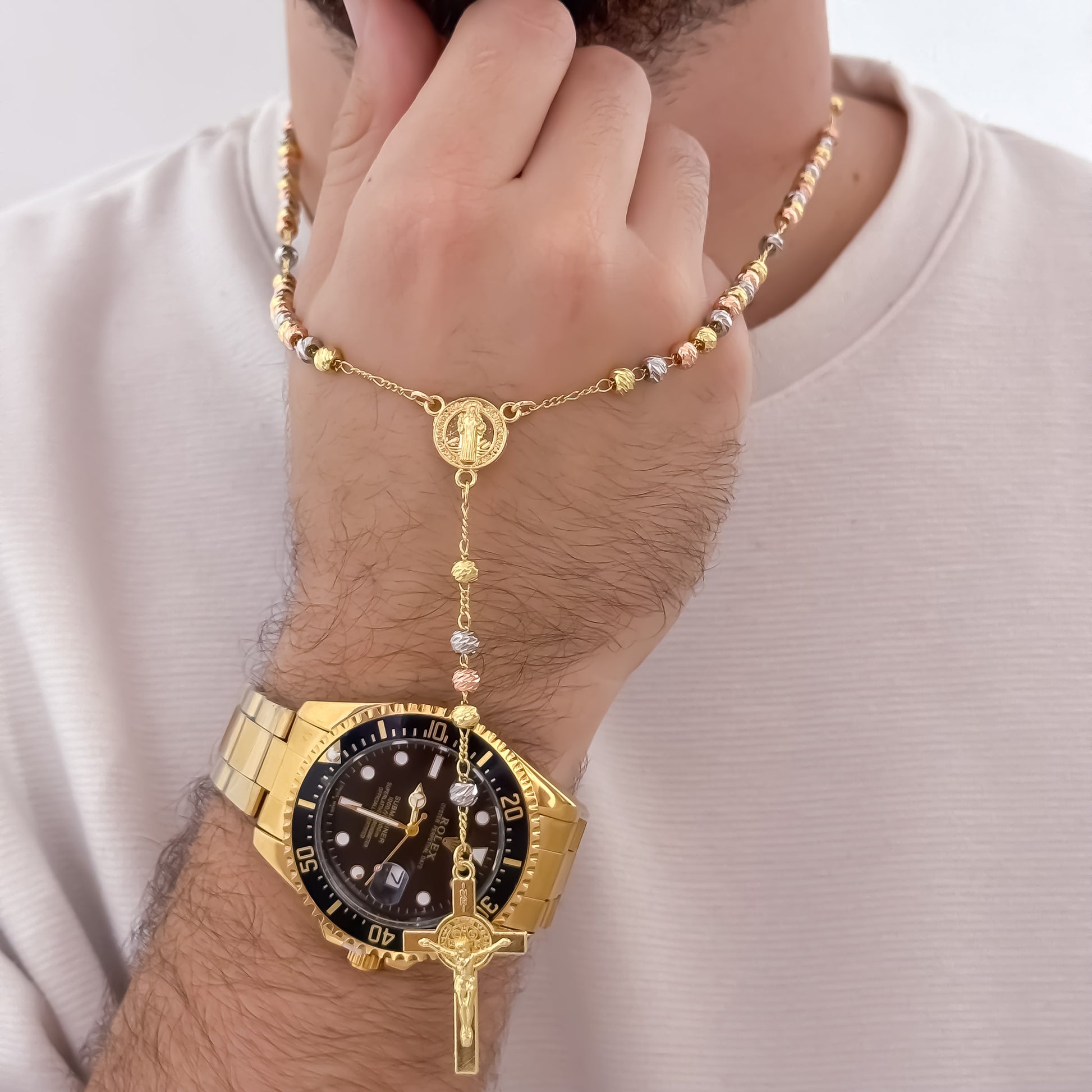 Camándula de San Benito en 3 Oros con Balín Italiano – Protección Total + Reloj Rolex 1.1