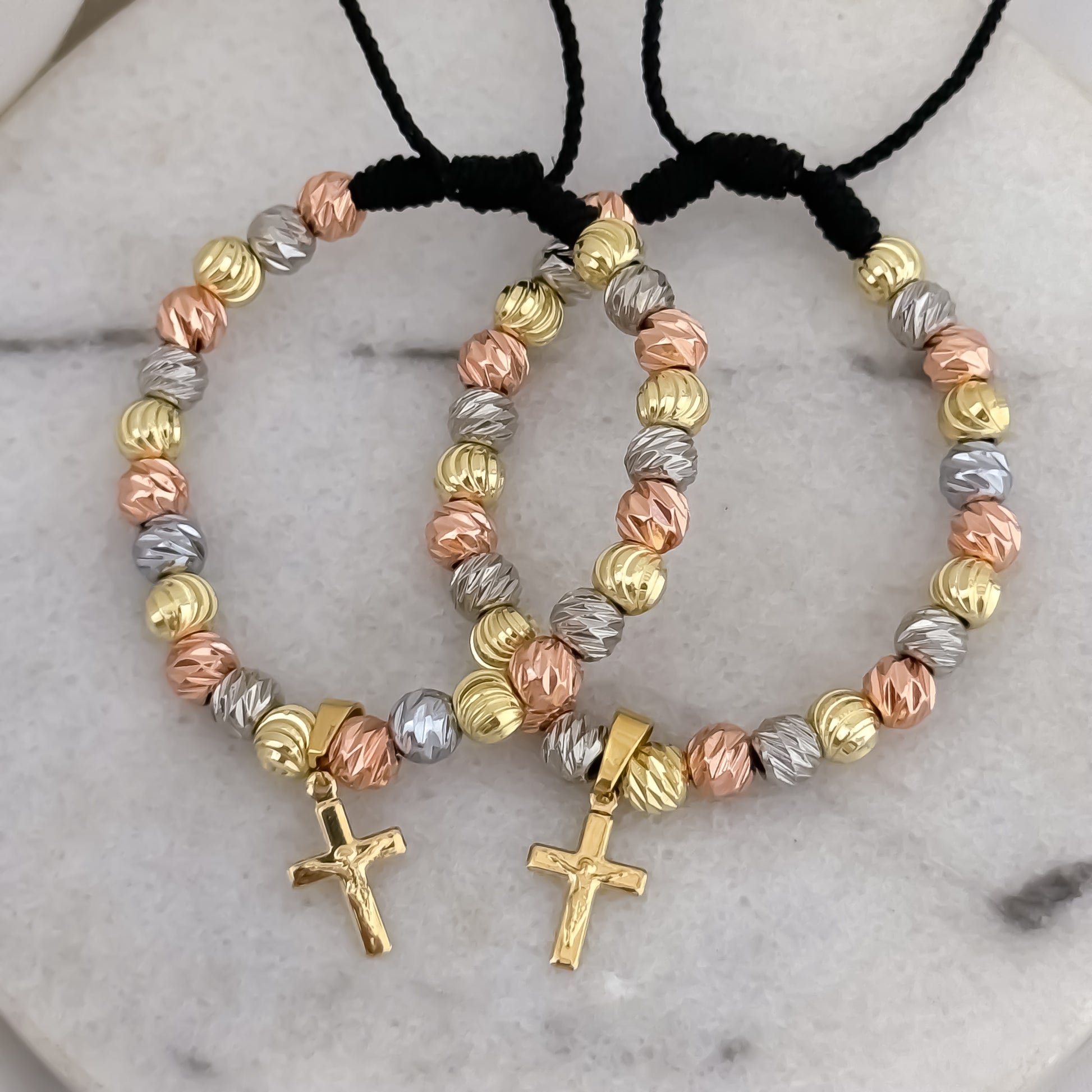 Promocion de 2 Pulseras para Parejas en 3 Oros + Cruz en Balin Nuevo italiano Nuevo Labrado en Oro Laminado 18k con Garantía de por vida