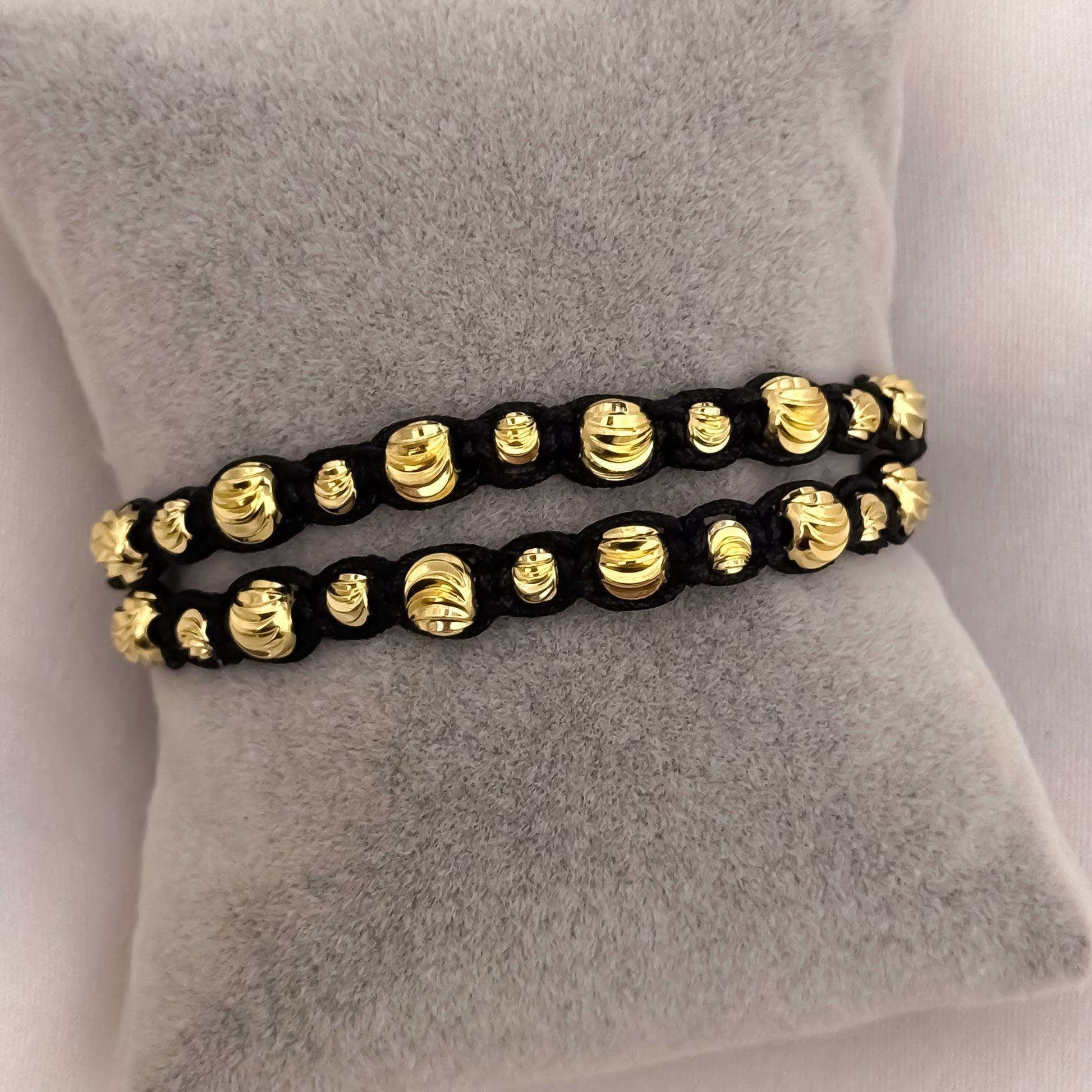 pulseras para Parejas: Balín Liso con Balin Diamantado en Oro Laminado 18k
