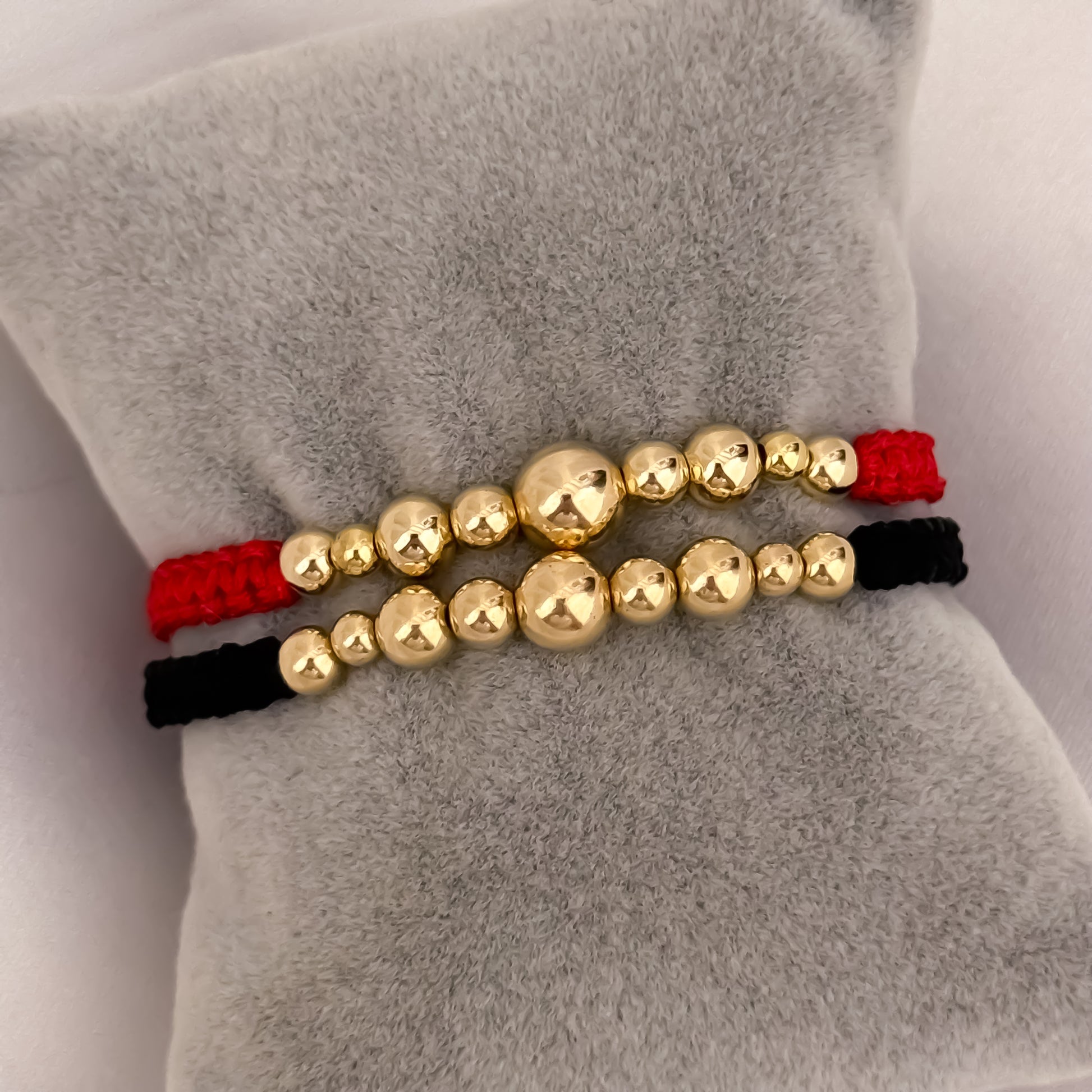 Las pulseras rojas y negras con balines de 6mm en oro laminado 18K son mucho más que simples accesorios; representan protección, amor y conexión profunda entre parejas. Inspiradas en antiguas tradiciones espirituales, estas pulseras unen lo estético con lo simbólico, convirtiéndose en una de las mejores opciones para expresar el vínculo entre dos personas.